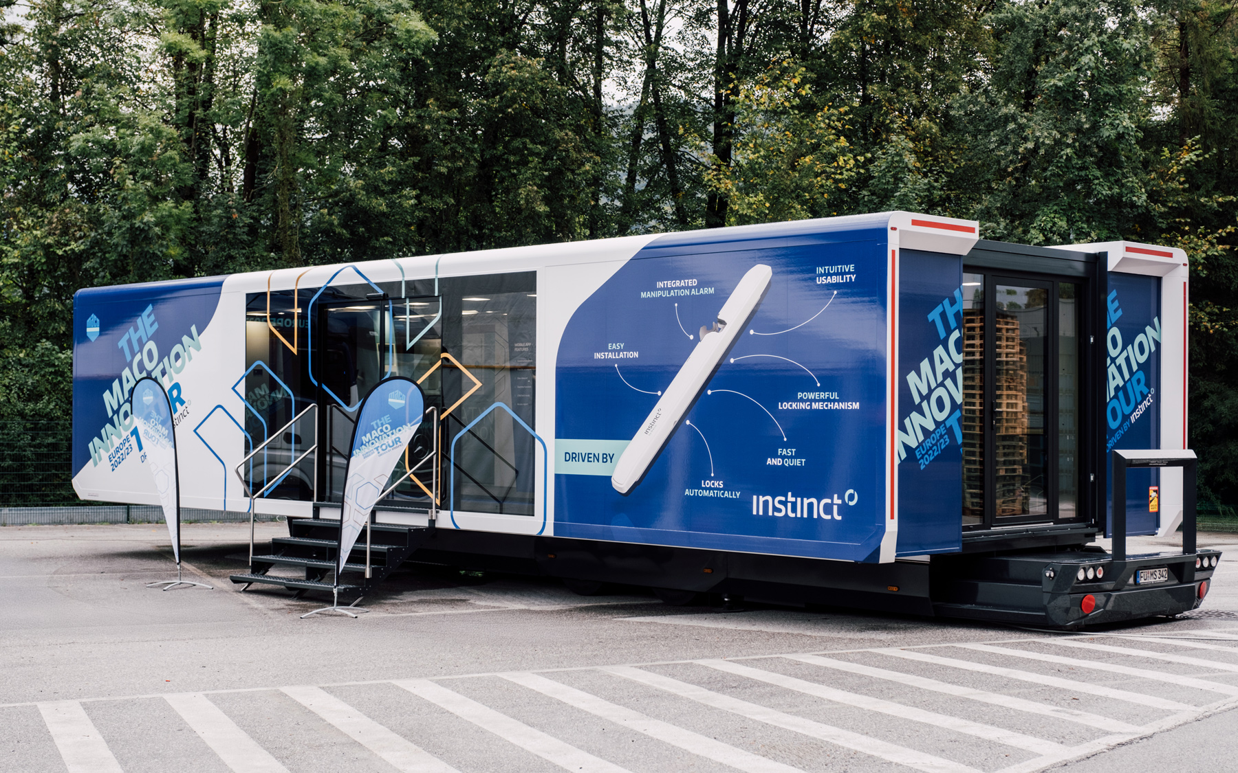 The MACO Innovation Tour, an eleven-month roadshow featuring a 65 m² mobile showroom traveling across Europe, was an award-winning communication strategy. Instead of relying on traditional trade fairs, MACO chose a mobile format to showcase the innovative power of its products, such as the fully electronic door lock INSTINCT. Thousands of visitors had the chance to experience the innovations firsthand and take part in an entertaining program. The tour’s success, which was even honored with the German Brand Award, confirmed the effectiveness of this direct customer engagement.